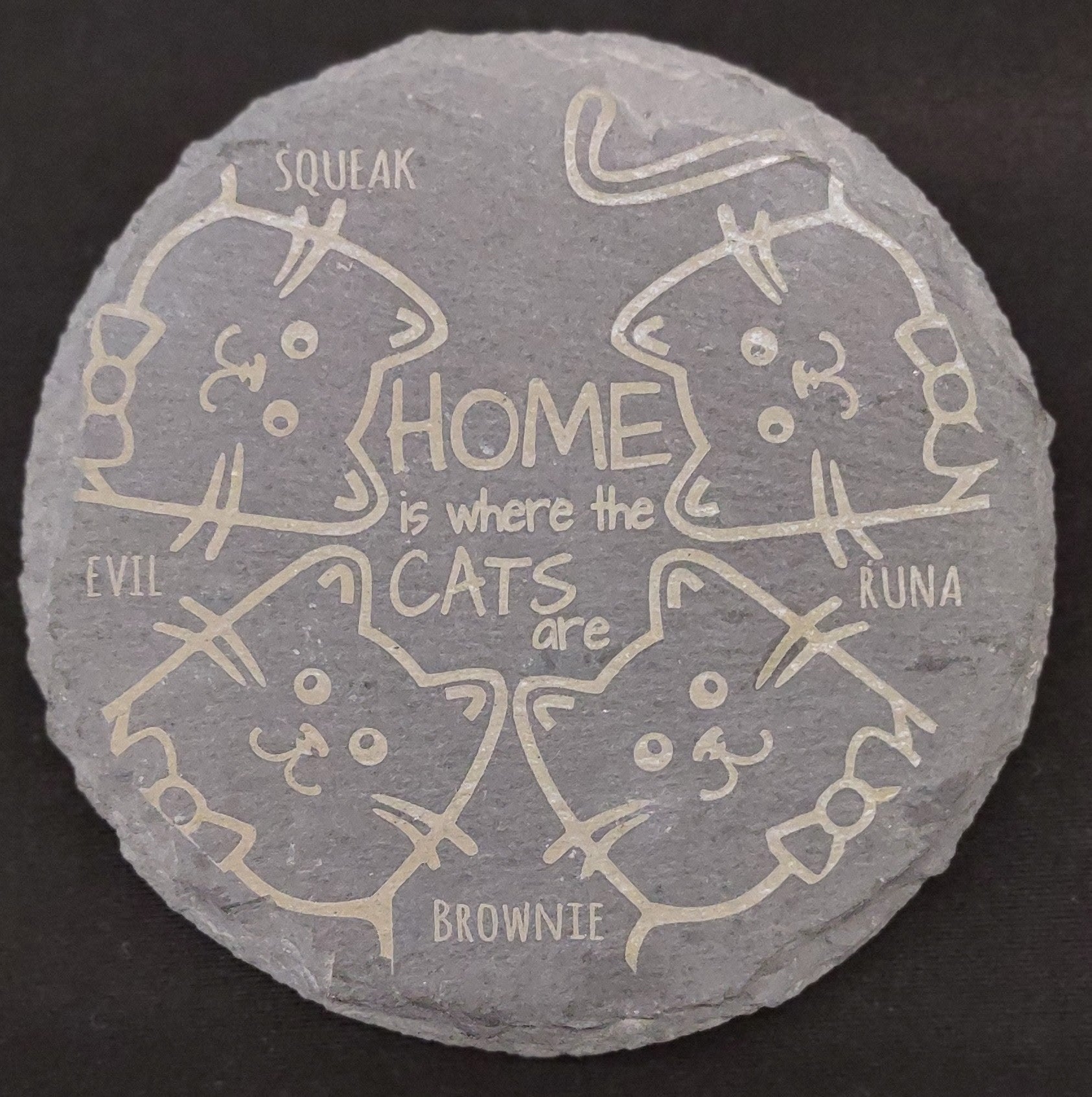 Spruce up your coffee table with these customized pet coasters made from sleek slate. Each coaster features your furry friends name, adding a personal touch to your decor. Say goodbye to boring coasters and hello to unique style!